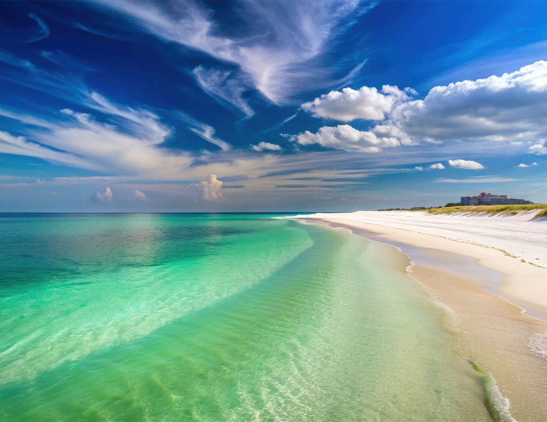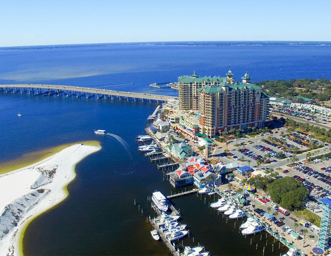 Destin is a city in northwest Florida, in the area known as the Panhandle. It's known for its Gulf of Mexico beaches and many golf courses, as well as the Destin Harbor Boardwalk. Nature trails pass through the dunes of Henderson Beach State Park in the south, where the coastline is dotted with pine and oak trees sheltering wildlife. To the west are the tall slides, waterfalls and pools of Big Kahuna's water park.